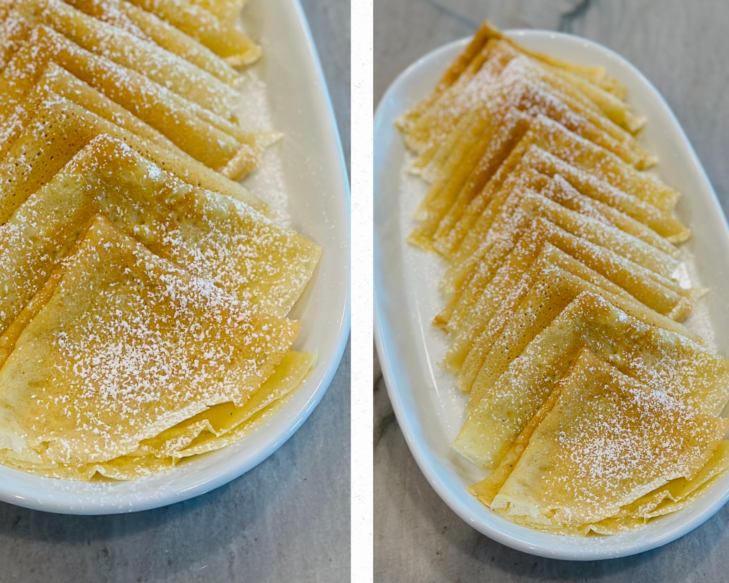 These gluten free crepes were made with Namaste’s Gluten Free Pancake Mix. They do have their own crepe recipe on the box but it’s not the best. I love the buttery, melt in your mouth texture of a European crepe. It’s the extra eggs and whole fat milk. I decided to see if it could be executed with Namaste’s mix. To my delight, they turned out perfect and continue to do so every time I make them.